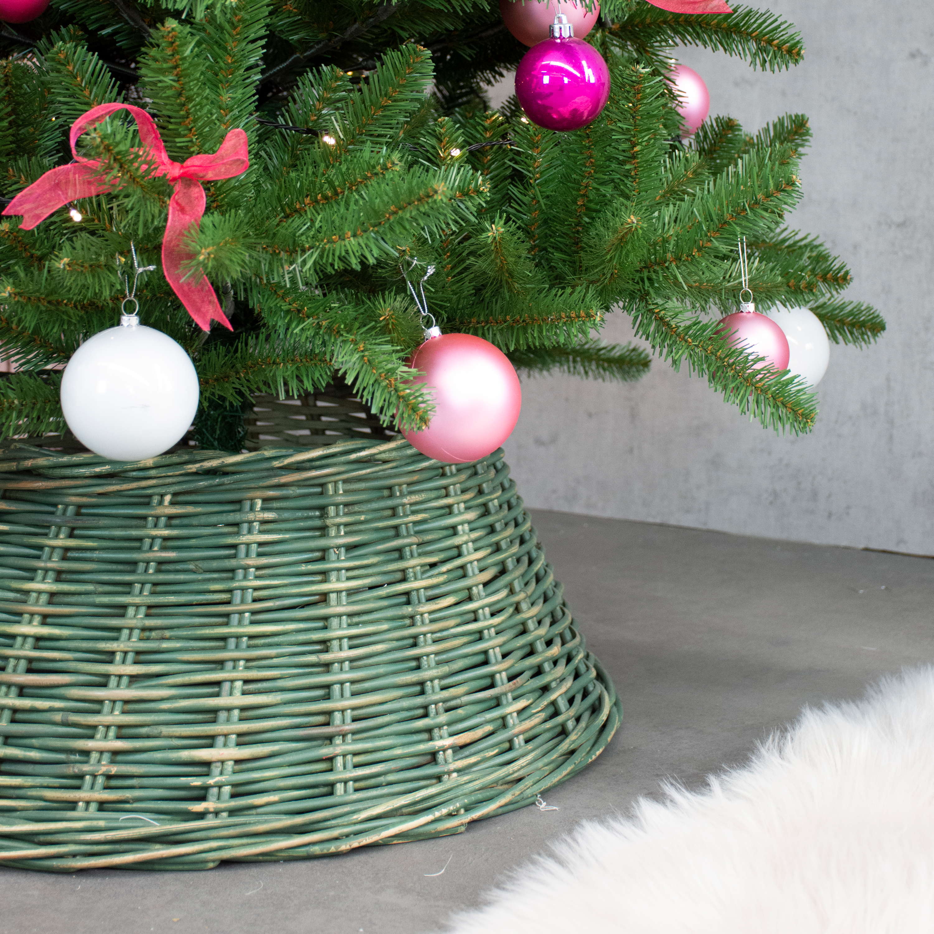 - Hochwertiger Korb für Weihnachtsbaumständer aus Rattan in Farbe grün