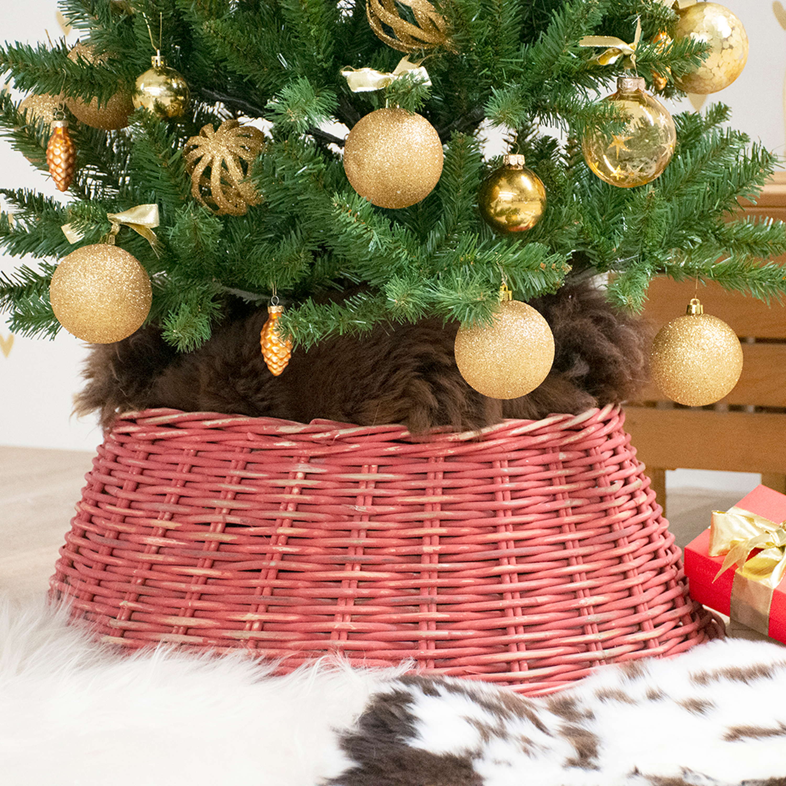 - Hochwertiger Korb für Weihnachtsbaumständer aus Rattan in Farbe rot