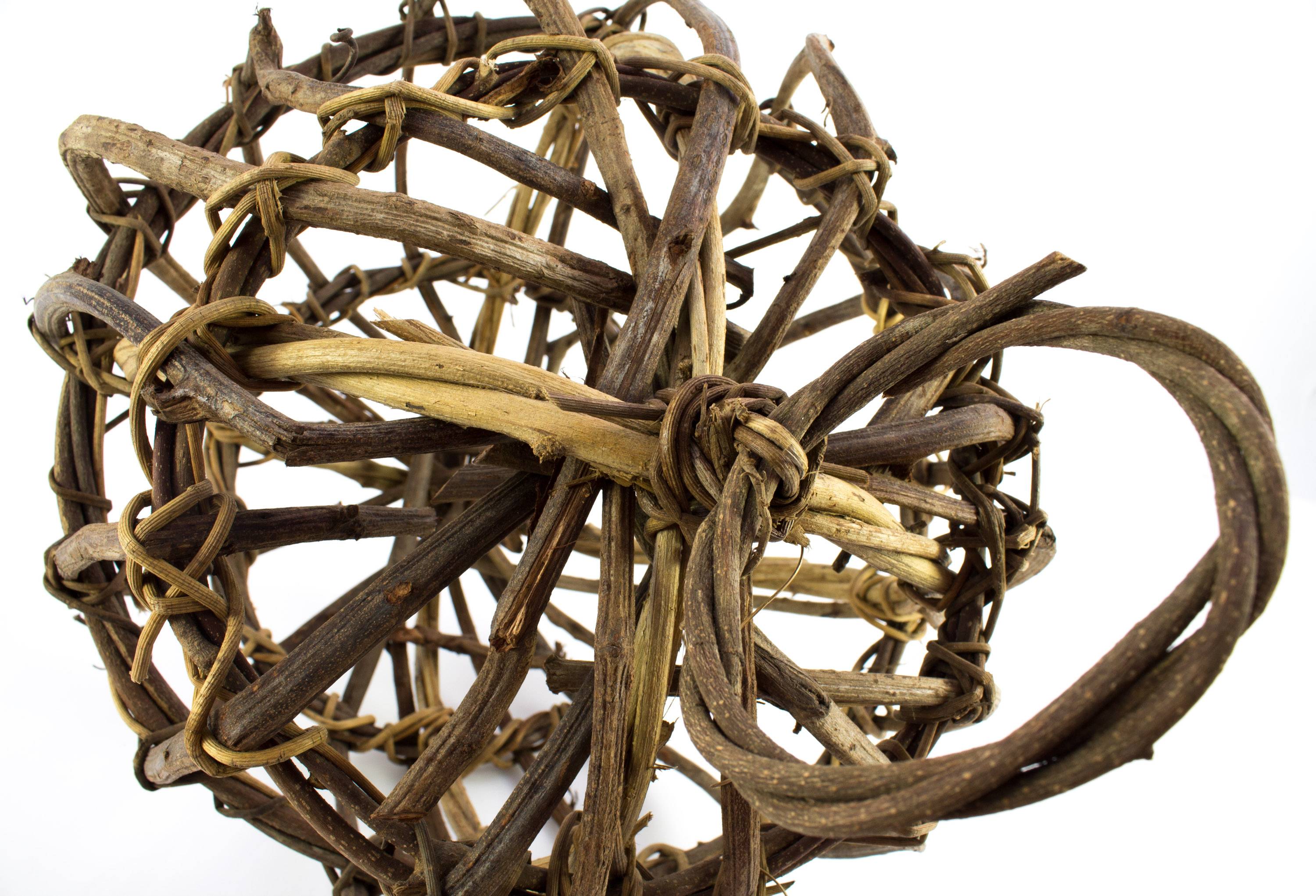 - die Holzweige sind mit dünnen Rebentrieben fest gebunden, die Oberfläche wurde Natur belassen