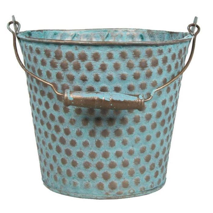 Zinkeimer TRUMAN mit Henkel, mit Muster, blau-braun, 14cm, Ø16,5cm